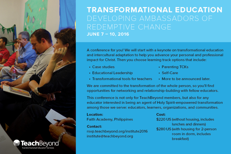 In the mornings we will explore issues surrounding transformational education and intercultural adaptation to help you advance your personal and professional impact for Christ.