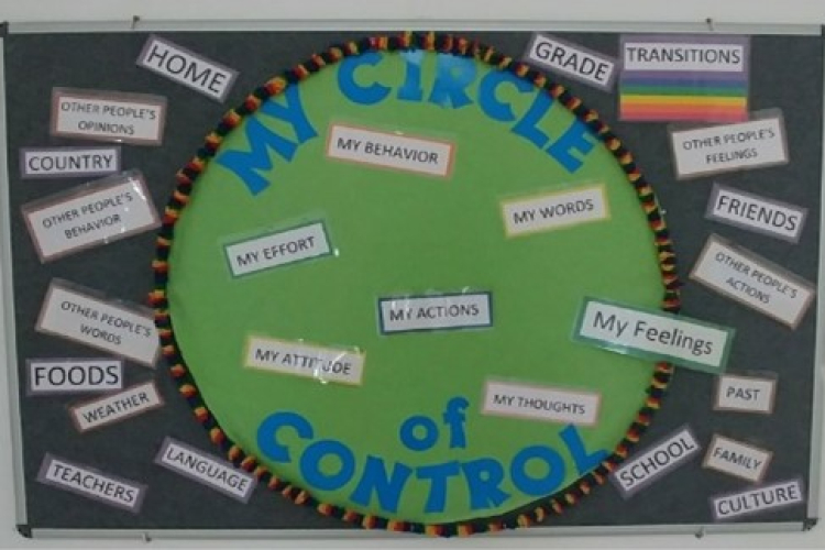 We then displayed the results on a bulletin board that was visible to both students and staff, providing common language and visuals to use when discussing specific situations. Since the bulletin board was also visible to parents during drop-off and dismissal time, it served to raise awareness even among parents. Several parents commented on how the ‘Circle of Control’ concept was impacting them personally, challenging them to think about areas over which they did and did not have control in their own lives. They were able to share personal experiences and convey empathy and understanding as they engaged their children in conversions about ‘My Circle of Control.’